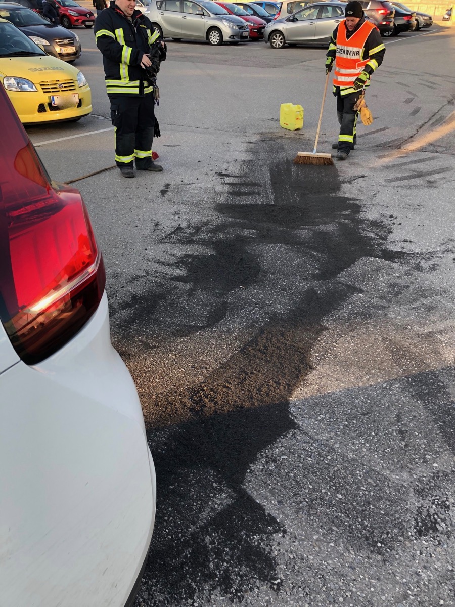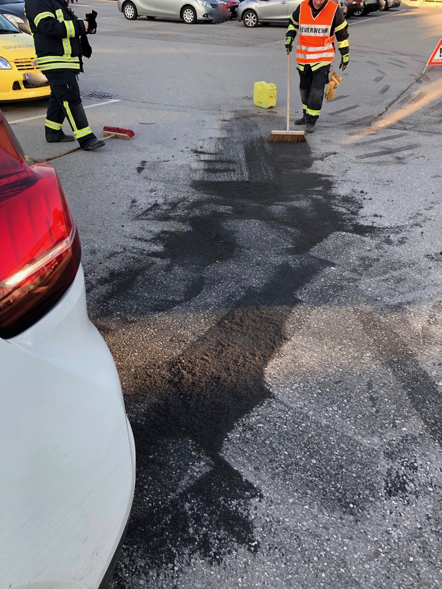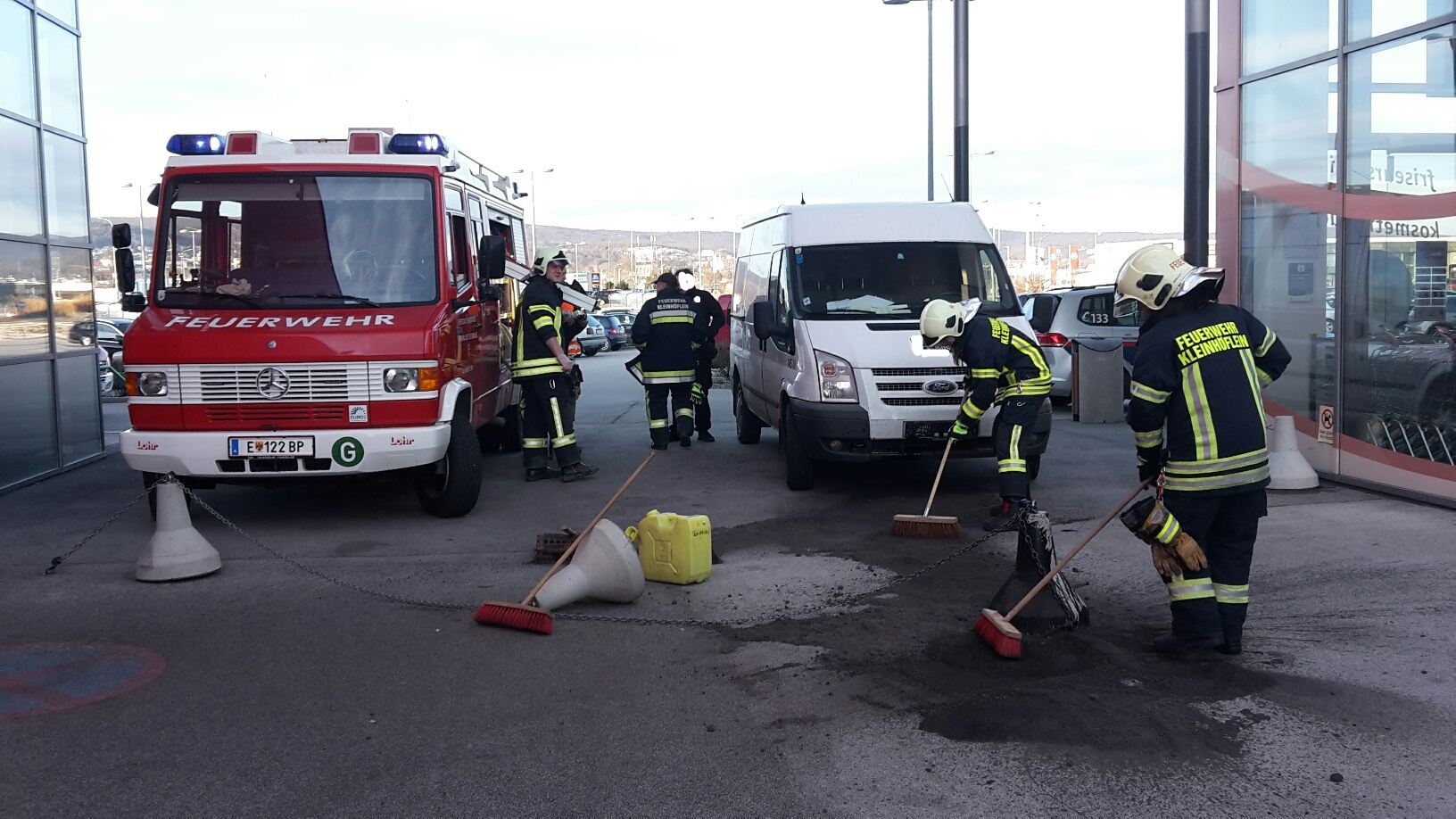 Um 15.18 Uhr wurde die Freiwillige Feuerwehr Kleinhöflein zu einer Ölspur beim Möbelix-Parkplatz alarmiert. Bei einem Fahrzeug war aus unbekannter Ursache Diesel ausgetreten. Der ausgetretene Diesel wurde durch das Aufbringen von Ölbindemittel beseitigt und danach konnte die Fahrbahn wieder freigegeben werden.