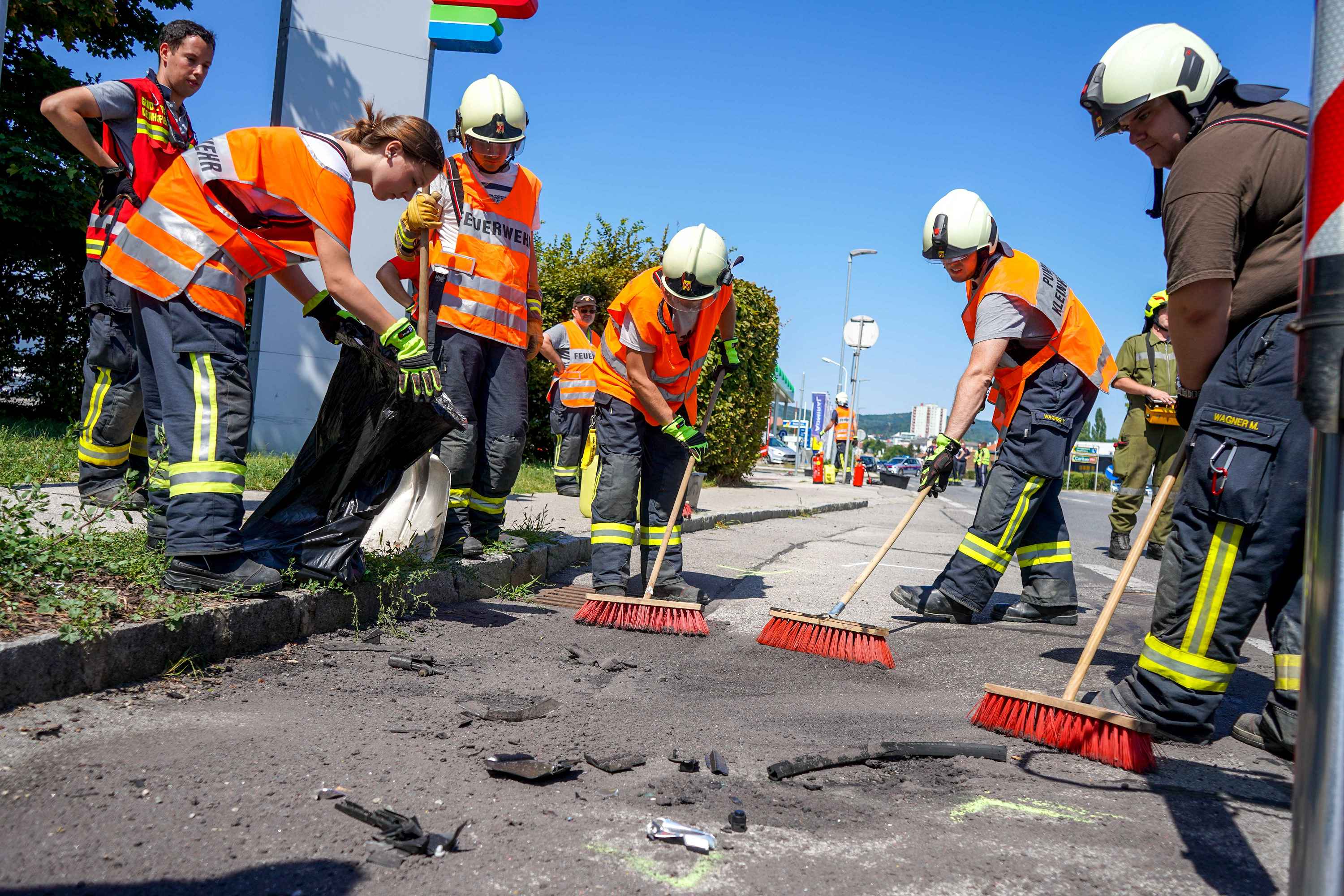 An der Übungsstelle wurde der Einsatzleiter darüber informiert, dass es im Bereich des Reifenlagers im Untergeschoß zu einem Brand gekommen ist, und ein Mitarbeiter nach wie vor vermisst wird. Auf entsprechende Rückfragen wurde der Einsatzleiter über die im Gebäude vorhandenen Gefahren durch den Brandschutzbeauftragten unterwiesen.