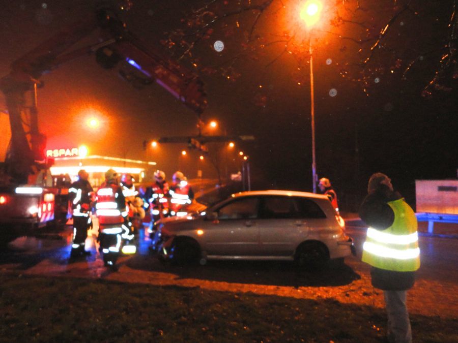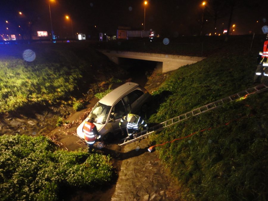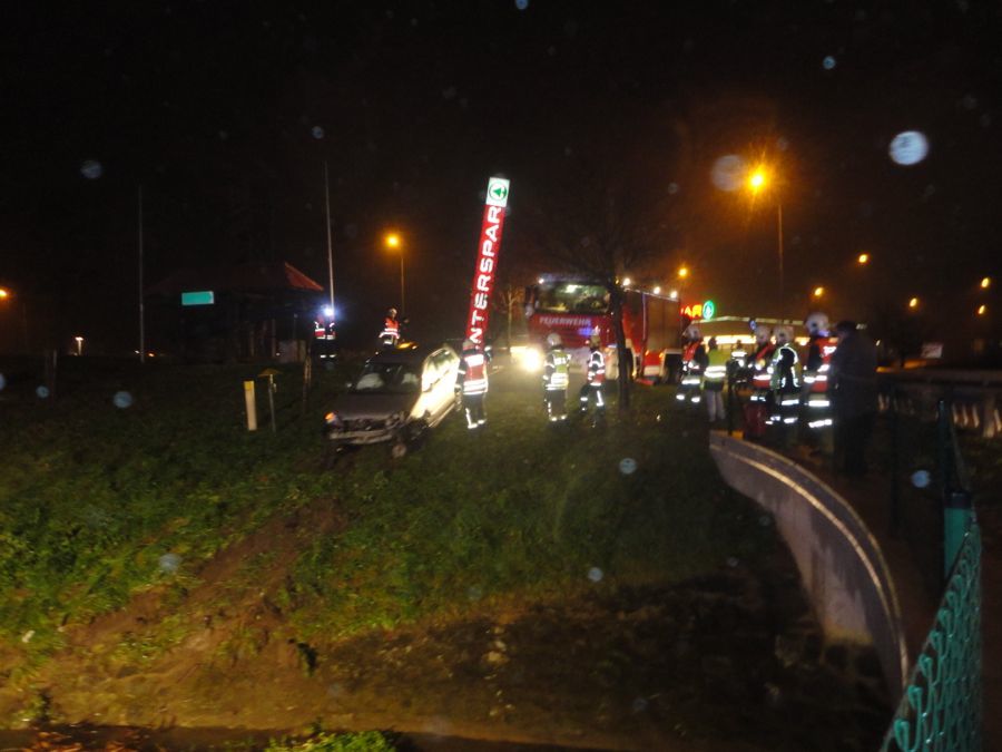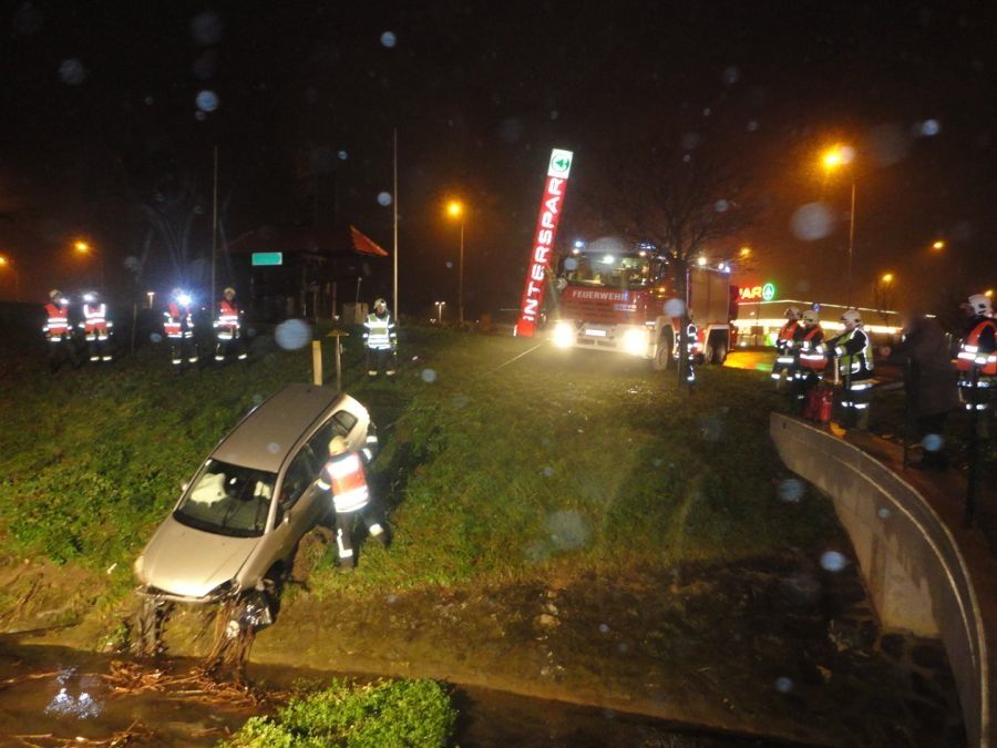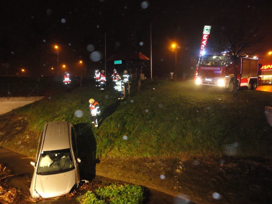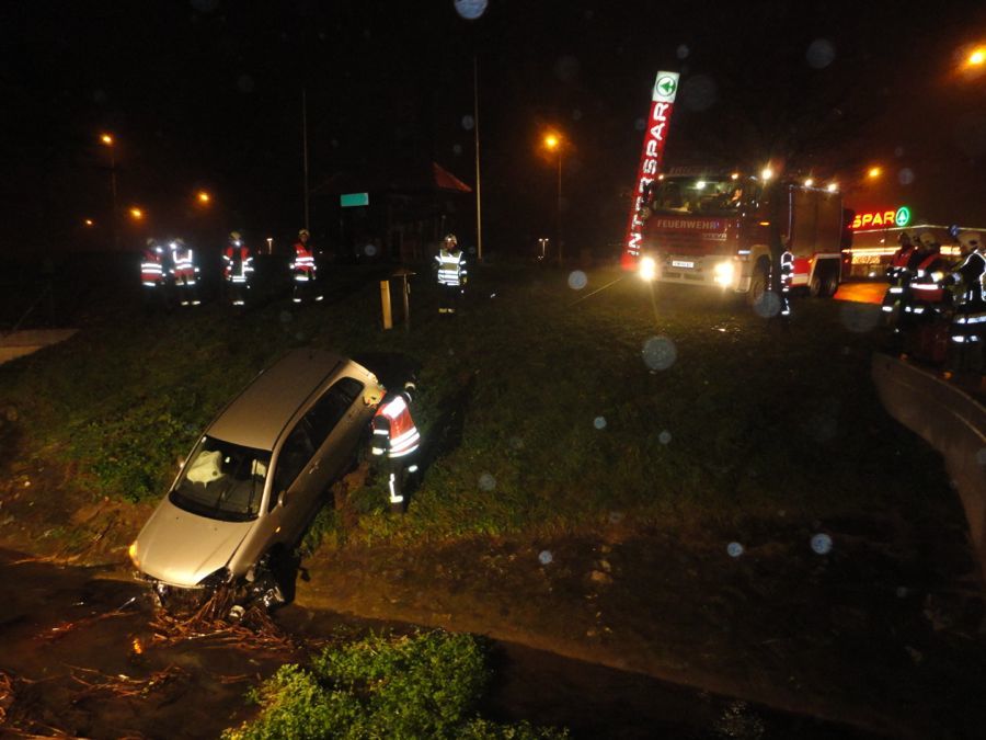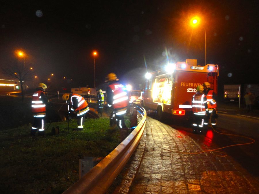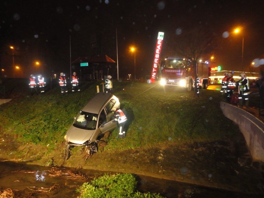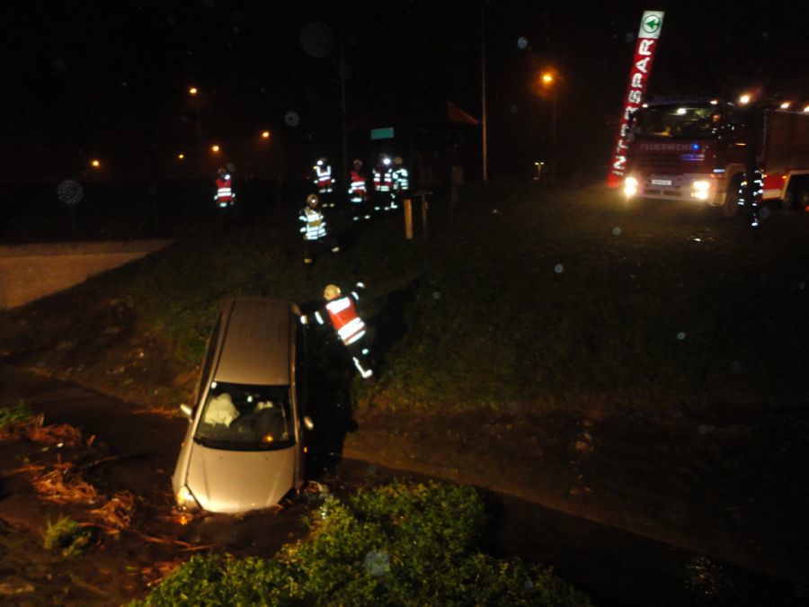 Um 0.37 Uhr wurde die FF Kleinhöflein zu einer Fahrzeugbergung auf der Mattersburger Straße, Kreisverkehr Kika, alarmiert. Als erstes Fahrzeug rückte das TLF 1000 aus. An der Einsatzstelle angekommen wurden wir von der Polizei informiert, dass aus unbekannter Ursache ein PKW im Bachbett des Eisbaches, der Mitten durch den Kreisverkehr läuft, gelandet ist. Vom Einsatzleiter wurde die Stadtfeuerwehr Eisenstadt mit dem SRF und dem Abschleppanhänger nachalarmiert. In weiterer Folge traf das KLF ein und sicherte die Unfallstelle ab. Inzwischen wurde von der FF Kleinhöflein die Unfallstelle ausgeleuchtet und mittels Steckleitern ein sicherer Abgang zur Unfallstelle hergestellt.