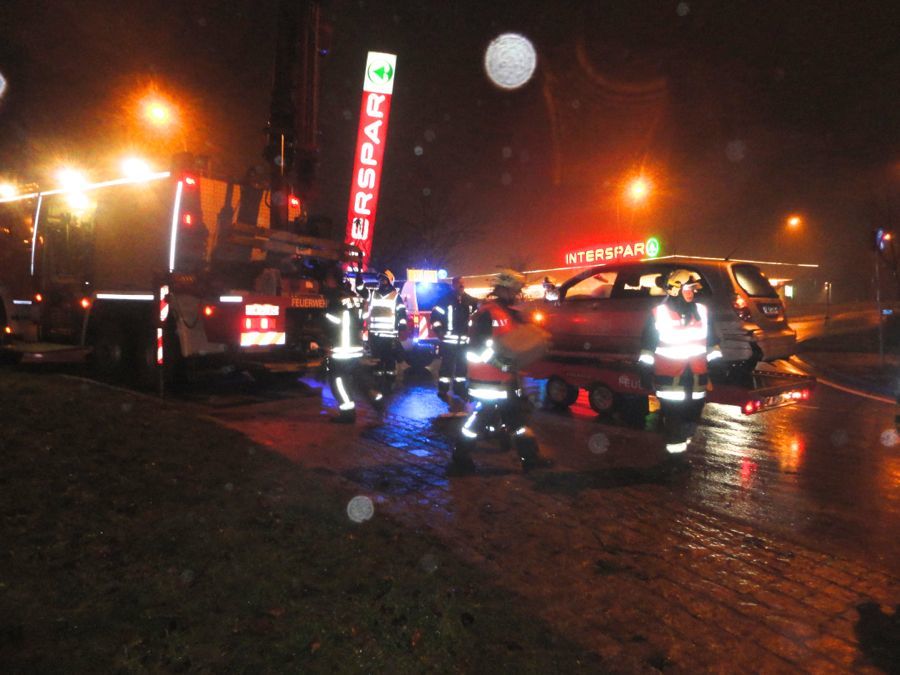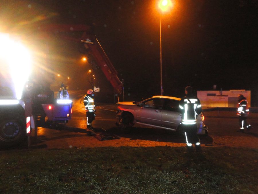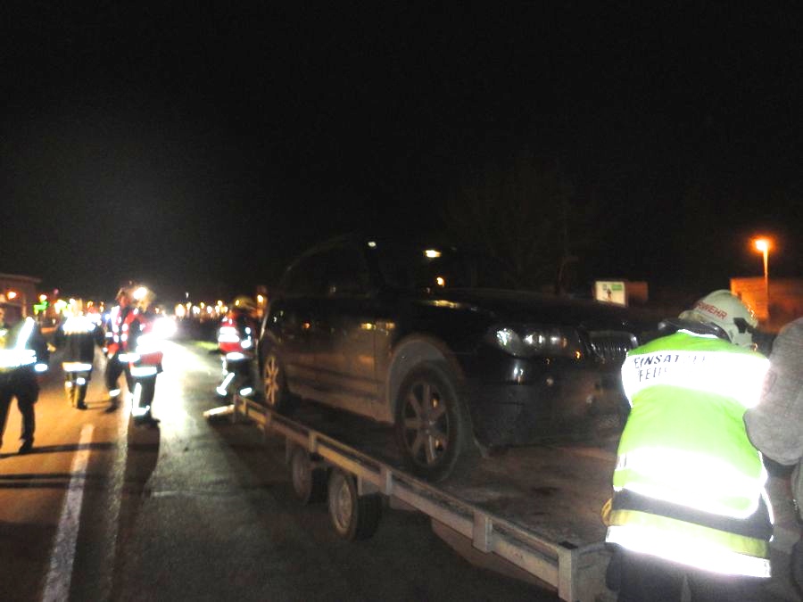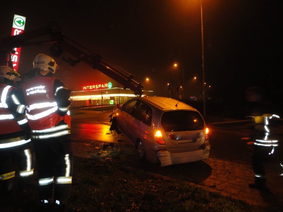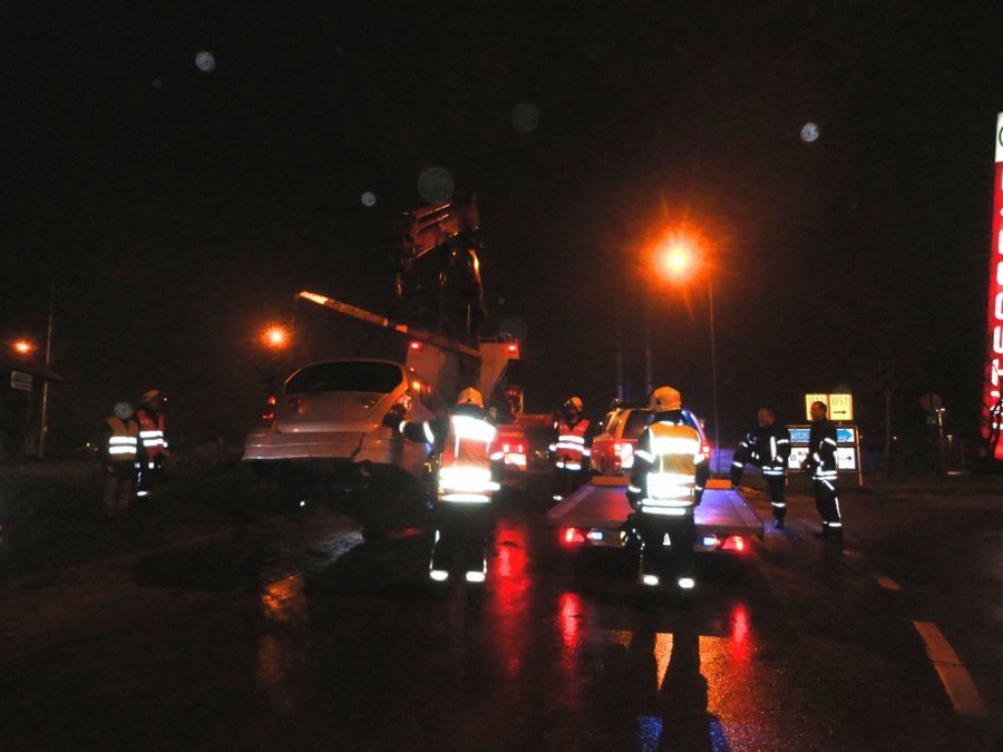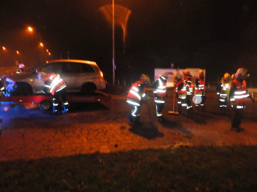 Von der Stadtfeuerwehr wurde das Fahrzeug mittels Seilwinde geborgen und auf den Abschleppanhänger verladen. Anschließend wurde noch eine Ölspur beseitig.