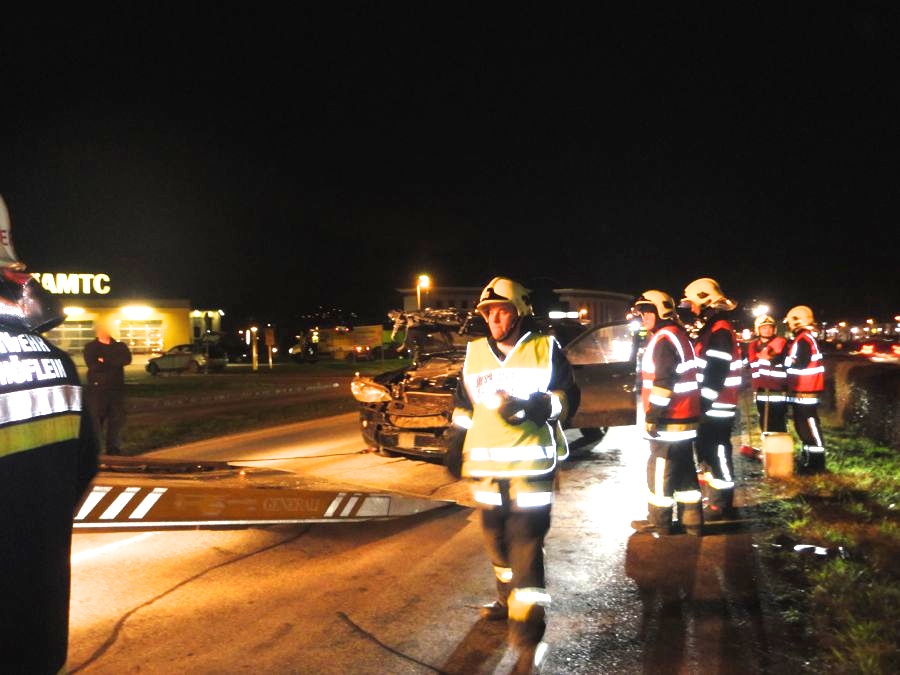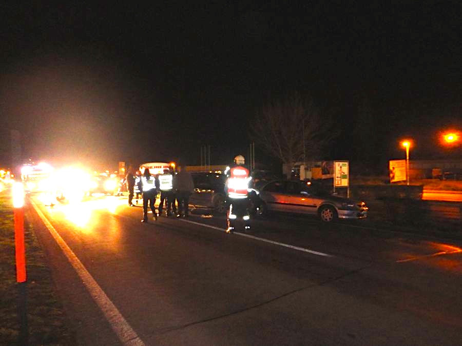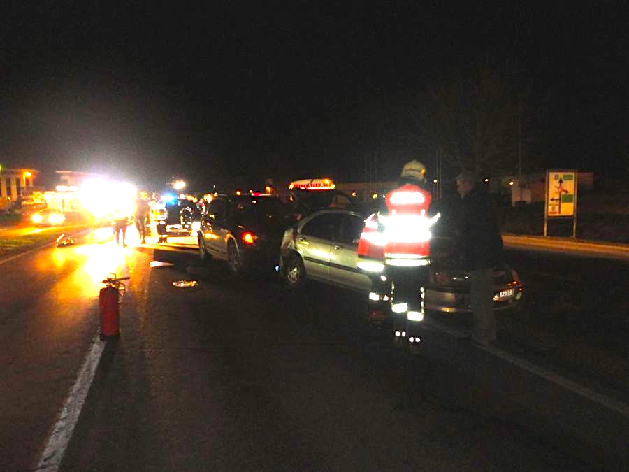 Um 17.28 Uhr wurde die FF Kleinhöflein zu einer Fahrzeugbergung auf der Mattersburger Straße, Höhe ÖAMTC, alarmiert. Zunächst rückte das TLF 1000 aus. An der Einsatzstelle angekommen wurden wir von der Polizei informiert, dass es aus unbekannter Ursache zu einem Auffahrunfall gekommen ist. Die verletzten Personen wurden bereits vom Roten Kreuz versorgt. Am Unfall waren insgesamt 4 Fahrzeuge beteiligt. Von der Polizei wurde der Verkehr auf die Nebenfahrbahn umgeleitet. In weiterer Folge traf das KLF ein und sicherte die Unfallstelle ab. Nachdem die Unfallaufnahme von der Polizei abgeschlossen war, wurde mit der Beseitigung der Ölspur und Reinigung der Fahrbahn begonnen. Drei Fahrzeuge wurden von Fremdfirmen abgeschleppt. Ein Fahrzeug konnte die Fahrt fortsetzen.